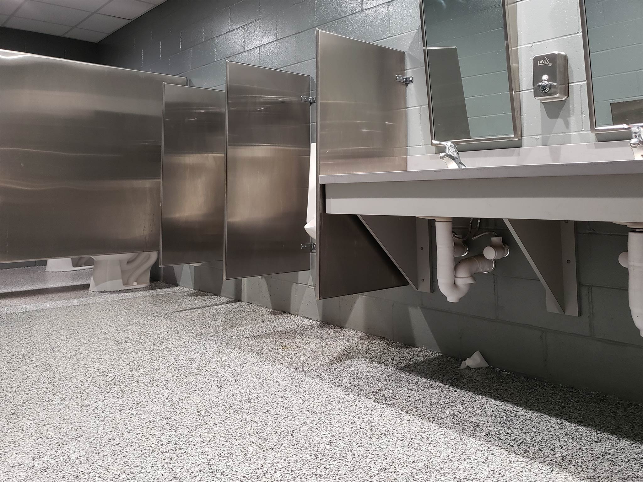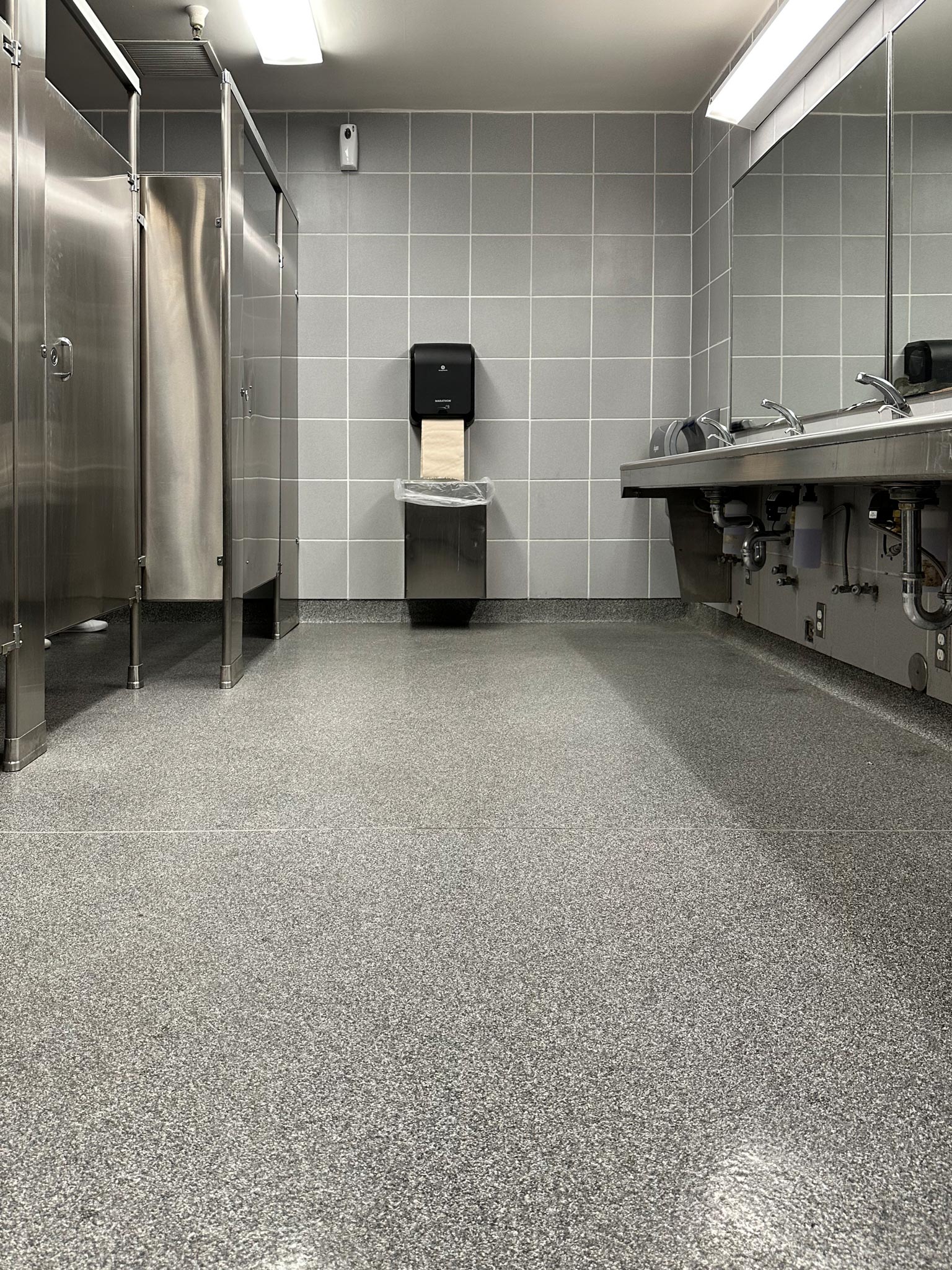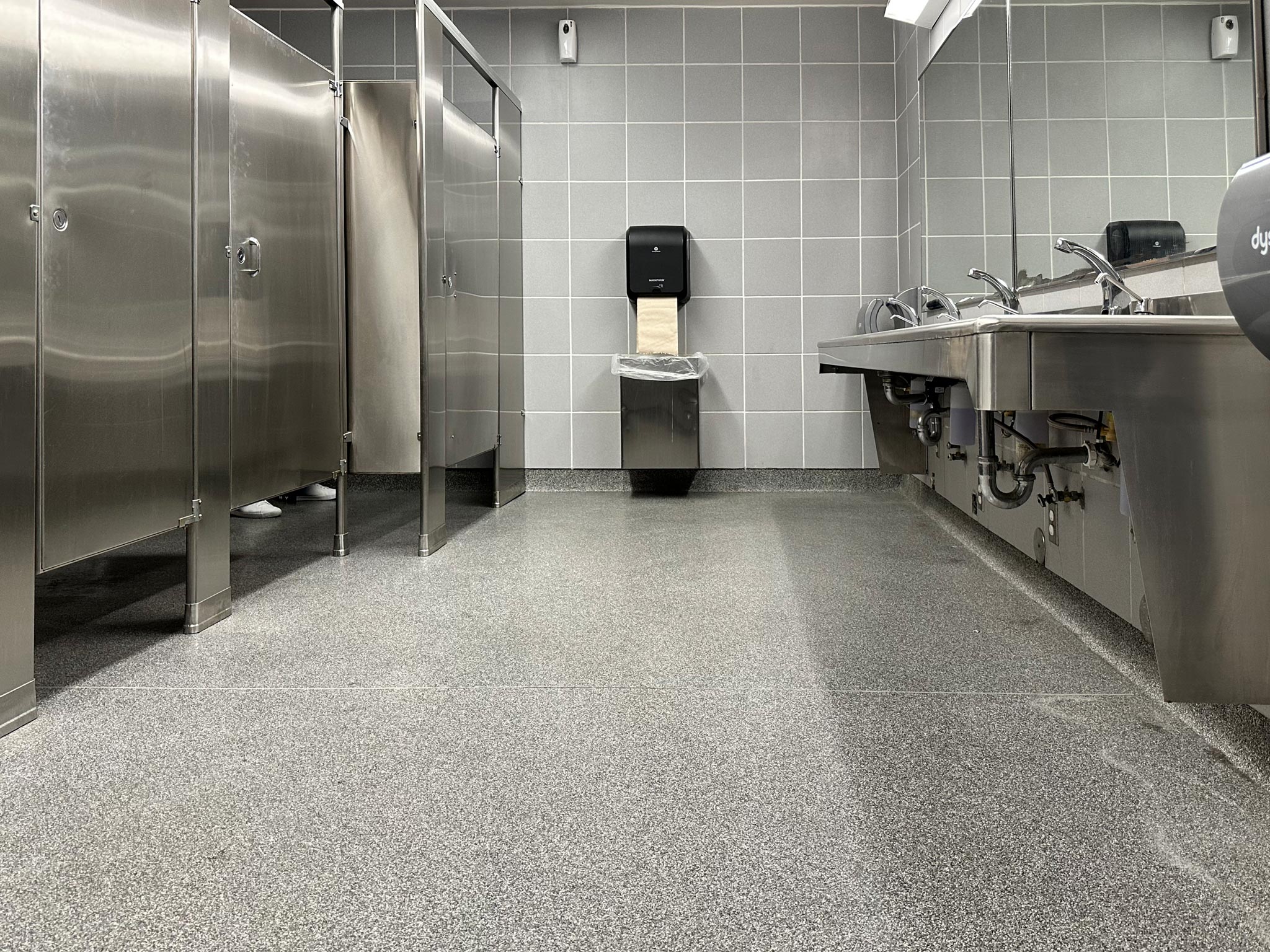 Designed to combine aesthetics with durability, the Endura cutting-edge resin chip coating system redefines the standard for public restroom flooring. Our resin chip floor coatings offer a seamless blend of style and functionality, elevating the restroom experience for residents and visitors alike.