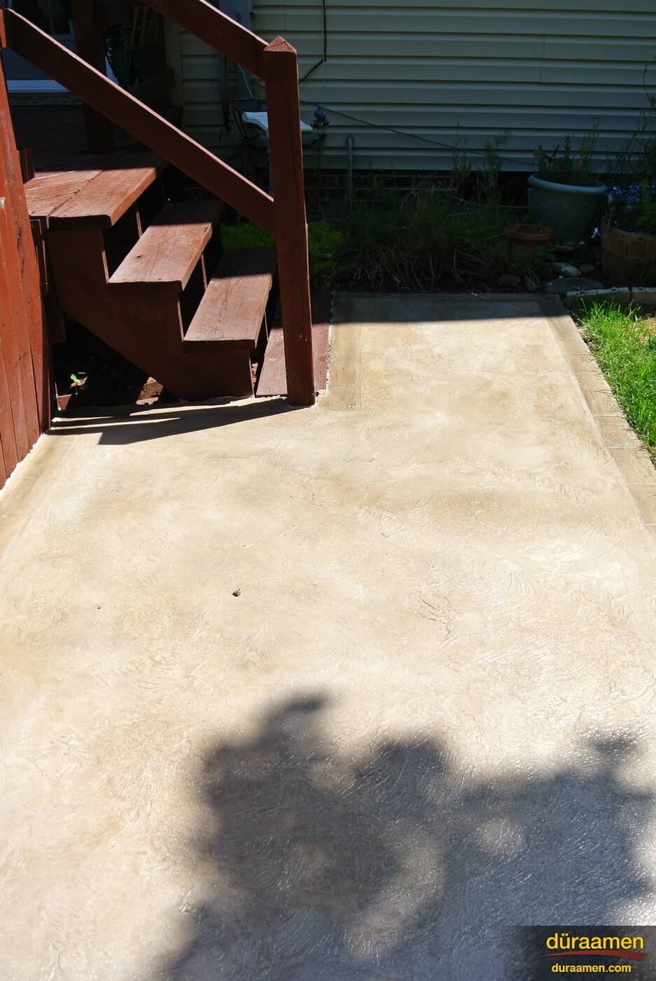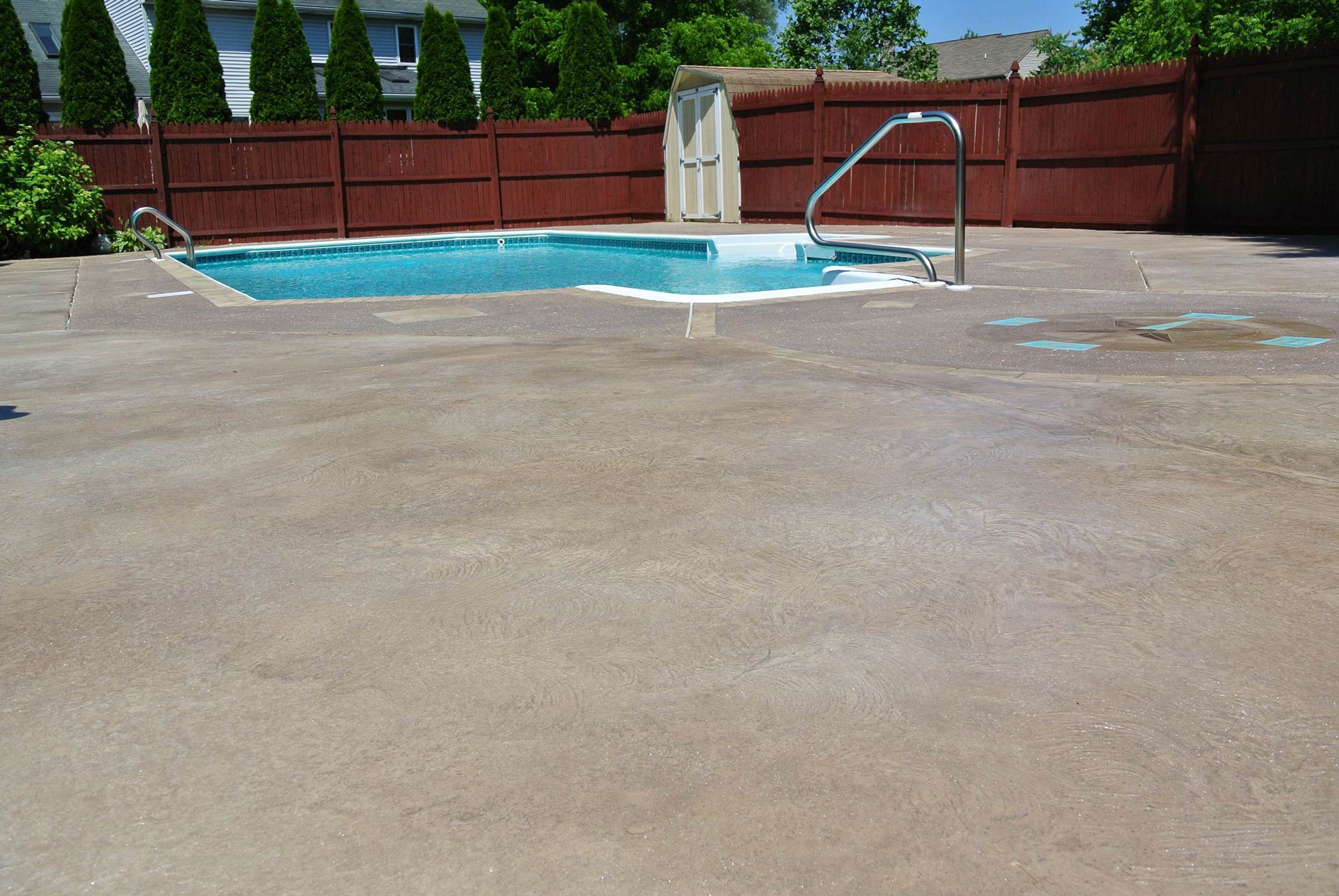 Below are photos of a exterior residential areas, including a pool deck, that have been resurfaced with Uberdek exterior concrete resurfacer. The result is renewed surface that accepts foot traffic in as little as 2 hours and rubber tire traffic within 8 hours. It is typically applied with a steel finishing trowel, squeegee, masonry brush for curbs or steps and broom finished.
