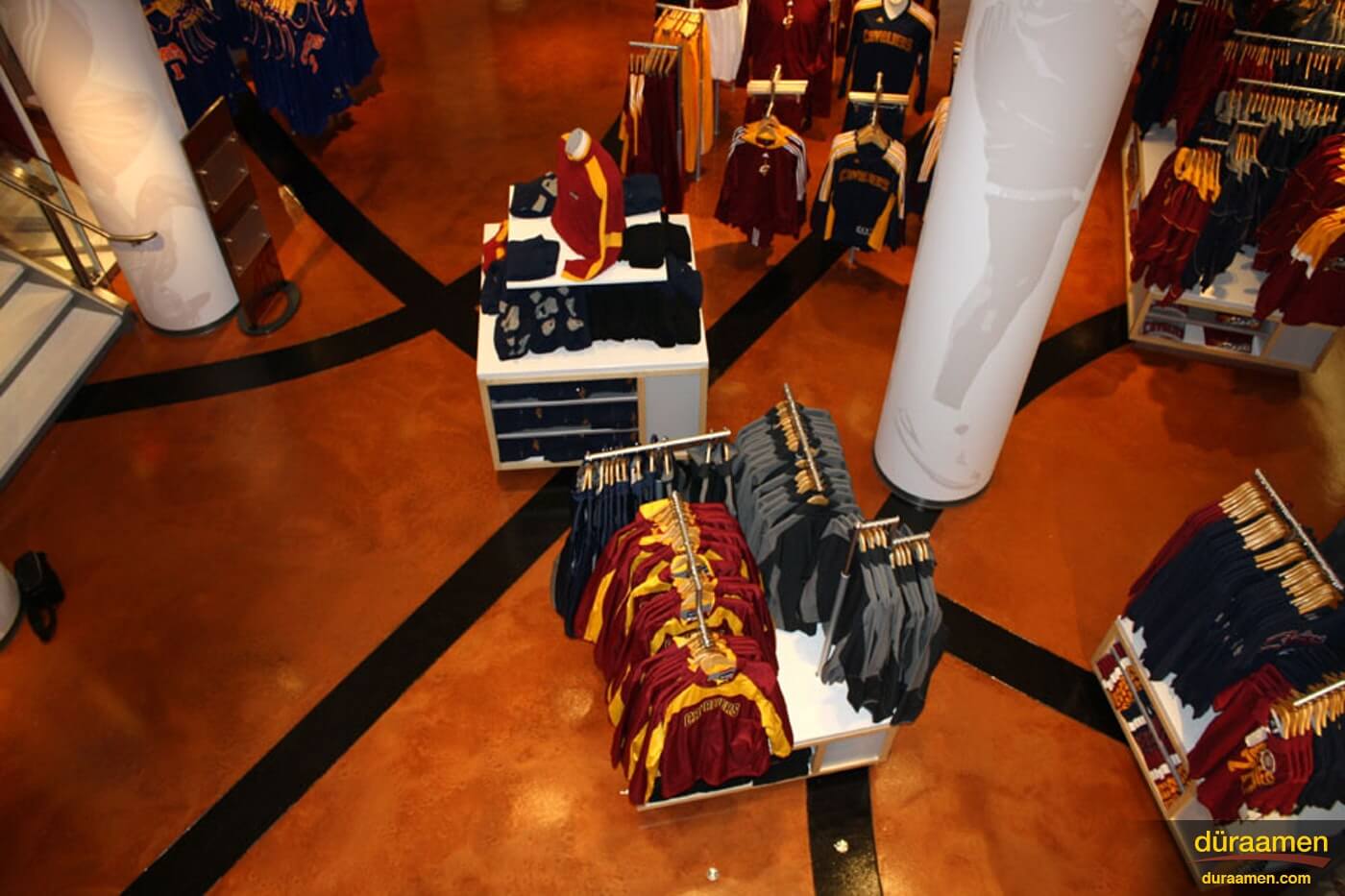 The Cleveland Cavaliers Team shop is located inside the Quicken Loans Arena in Cleveland, Ohio. To attract shoppers and look like the shop was the official shop of the Cleveland Cavaliers the floor design had to be “fit for a king.” That’s why the Cavaliers chose Duraamen’s designer epoxy floor system to create there unique floor design.