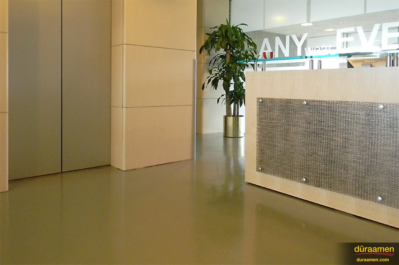 This trendy lobby area of a NYC office was the perfect opportunity for the installation of Duraamens self leveling flooring NYC Office Lobby | Duraamen Engineered Products Inc | Duraamen Engineered Products Inc