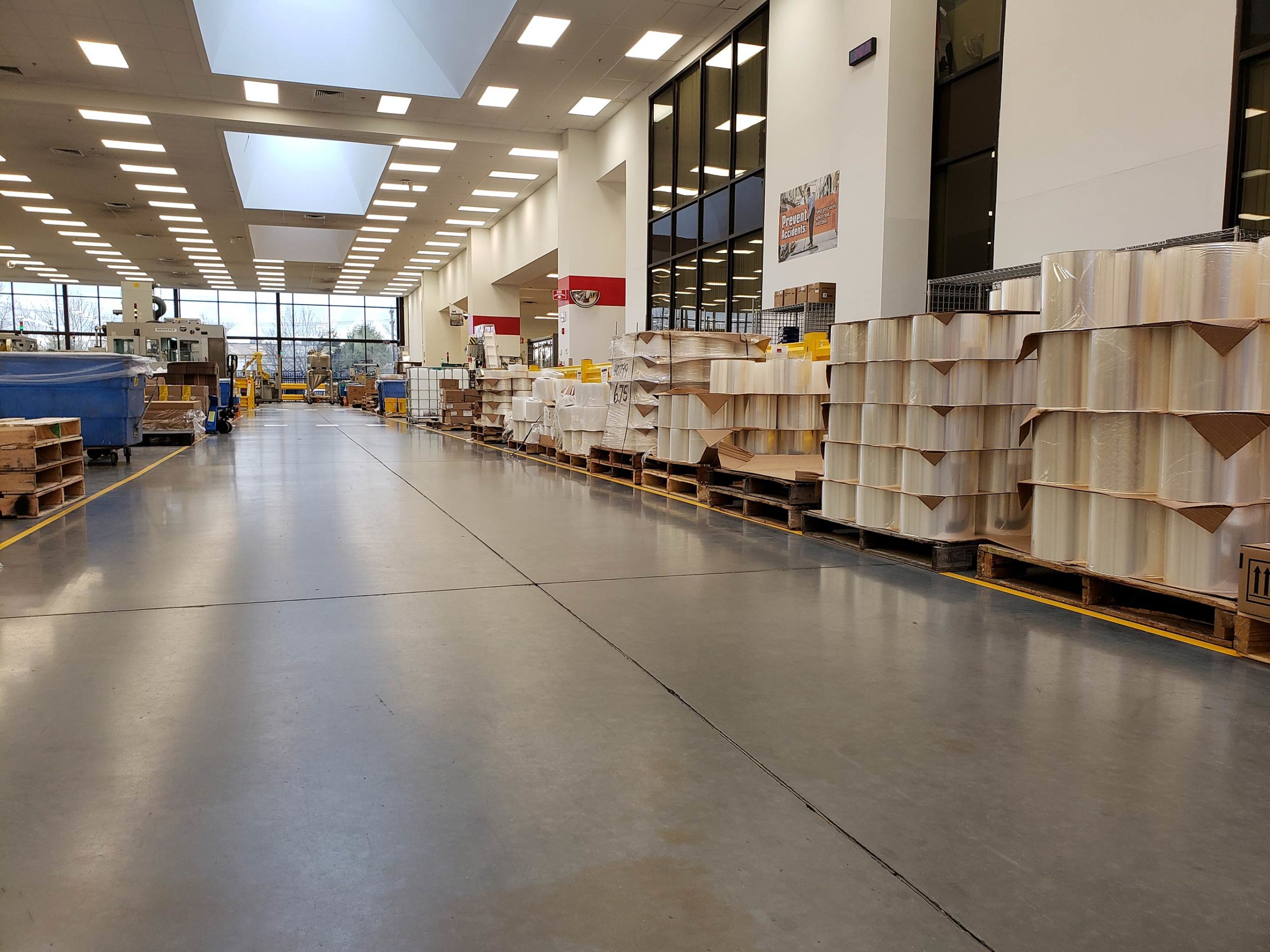Self leveling epoxy flooring Perdure SLE from Duraamen was the perfect solution for this Newark, NJ based beauty supply manufacturing facility. Duraamen’s seamless, resinous flooring solutions for industrial concrete floors provide the ultimate protection from high volume industrial traffic, abrasions, impacts, thermal shock, moisture and chemicals