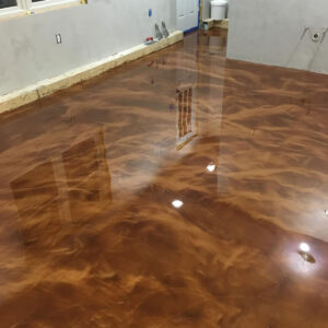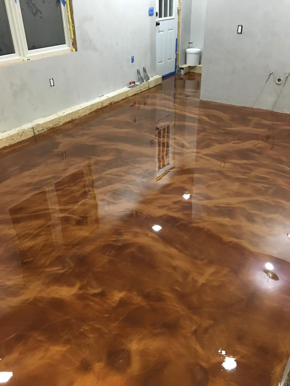 Metallic flooring provides a deep-shine finish. Colored metallic pigments are suspended in a resinous floor coating. A multitude of colors are available, with design options as broad as your imagination allows.