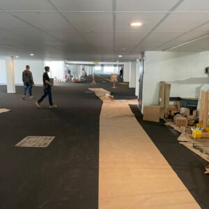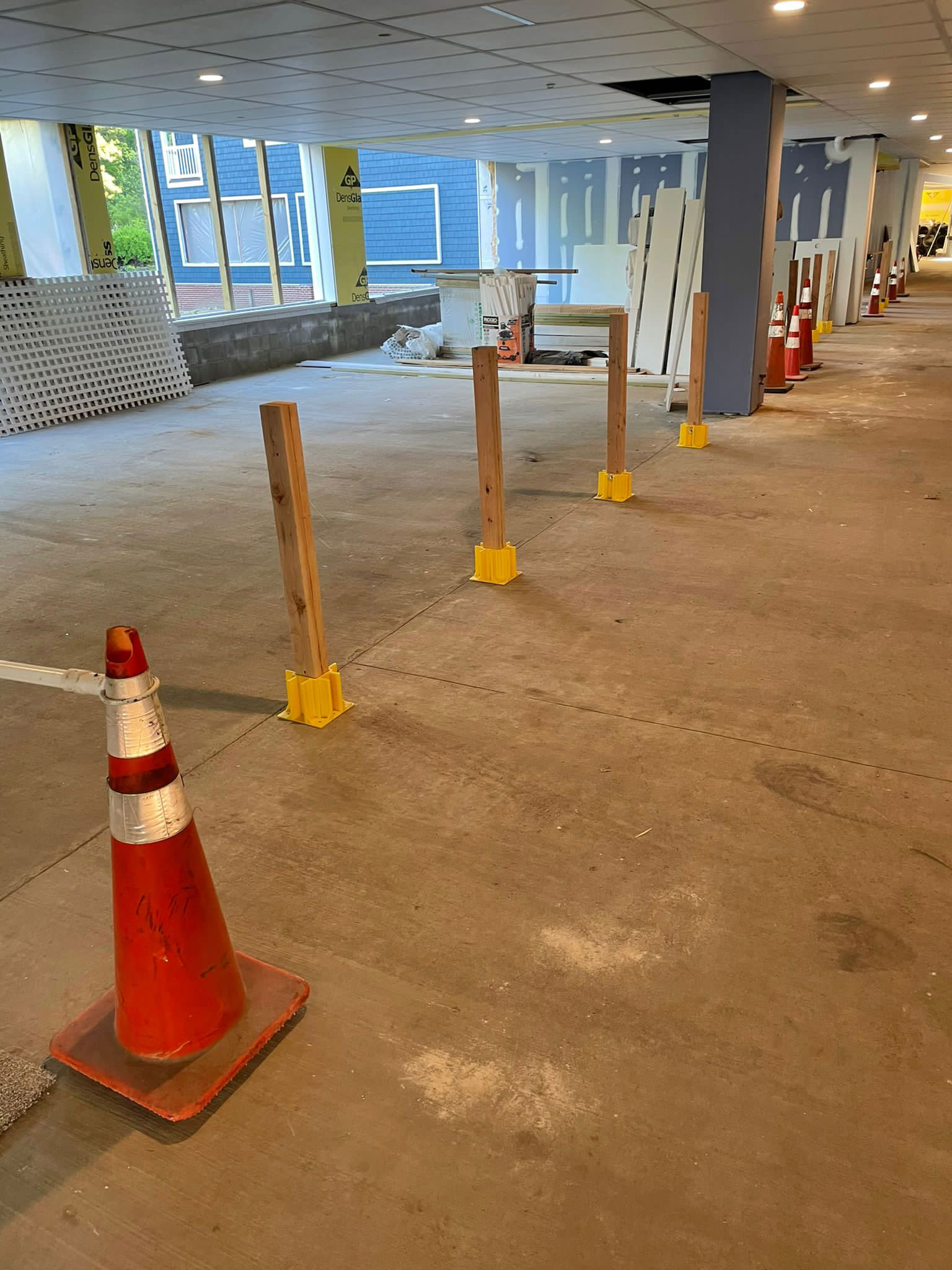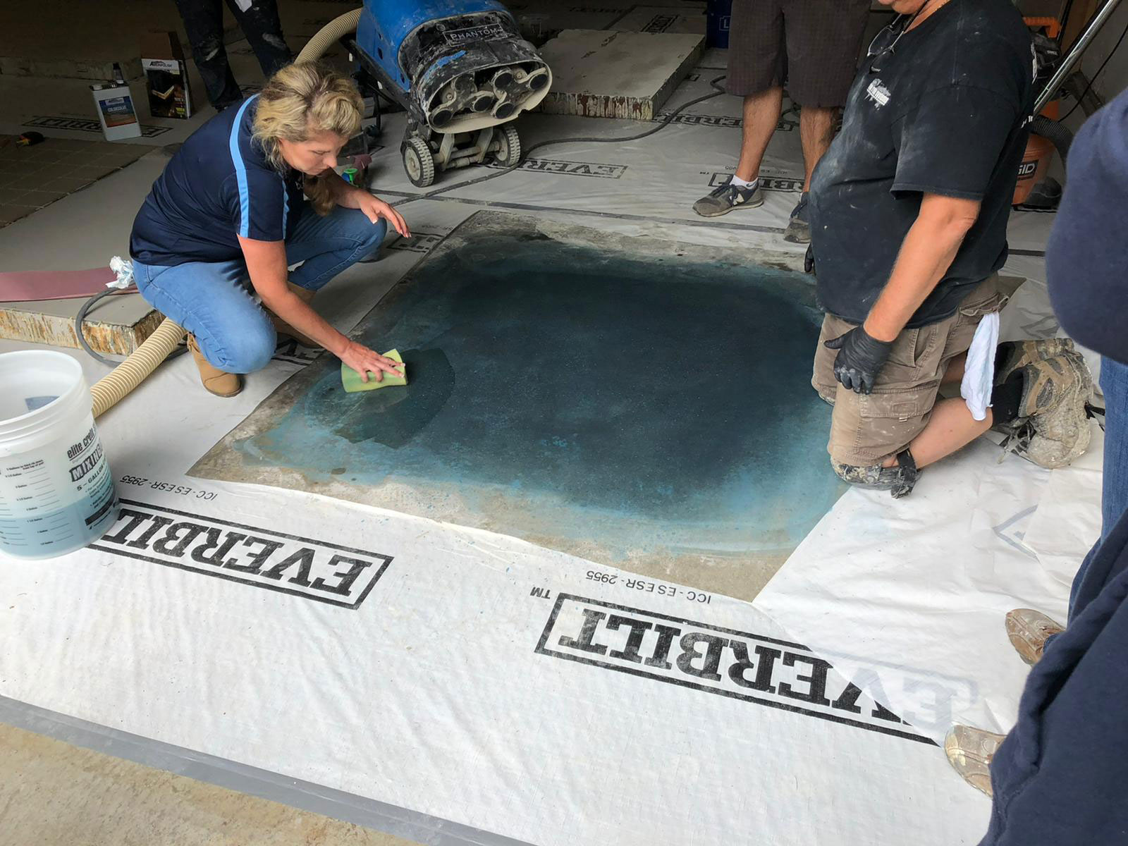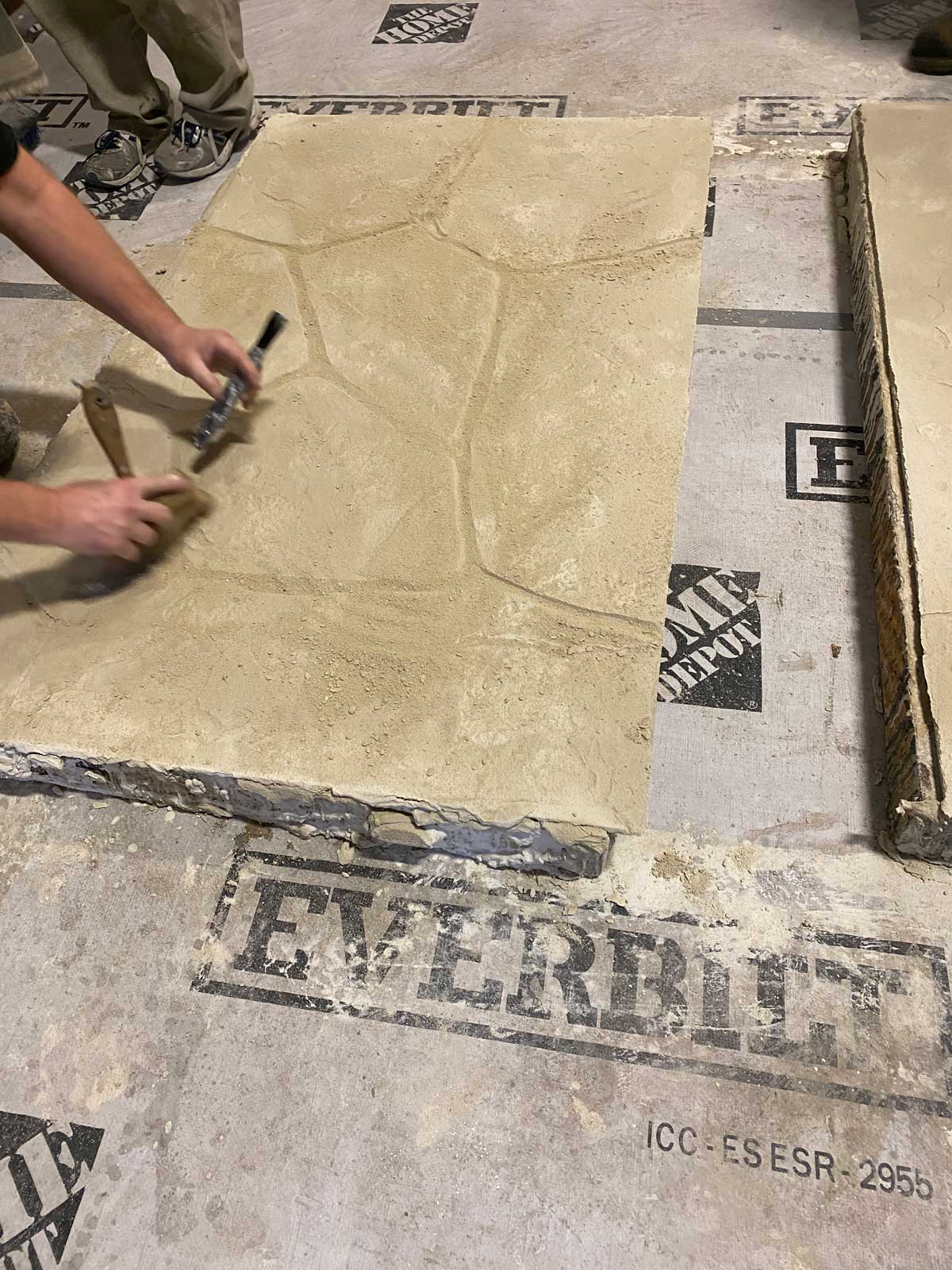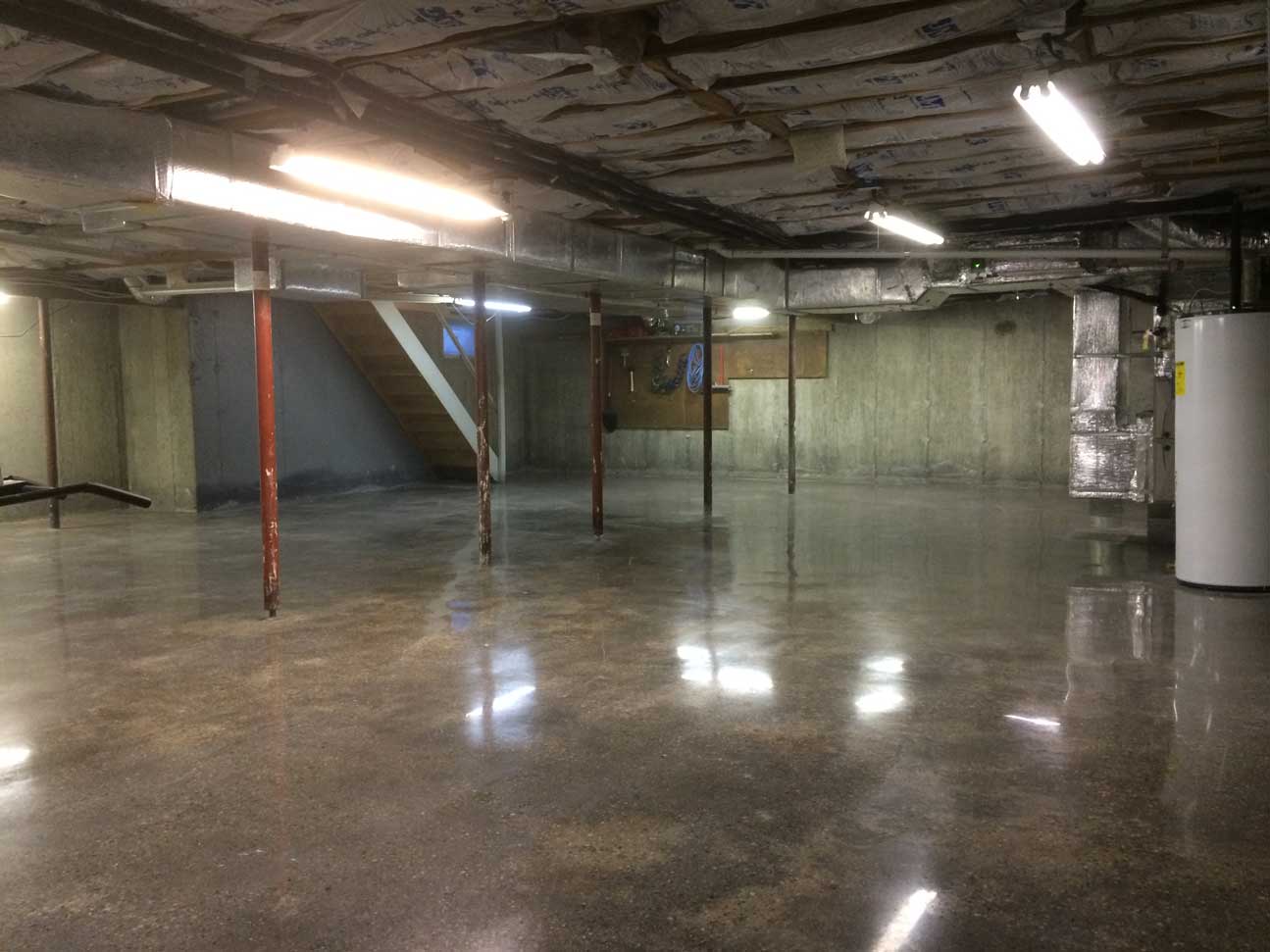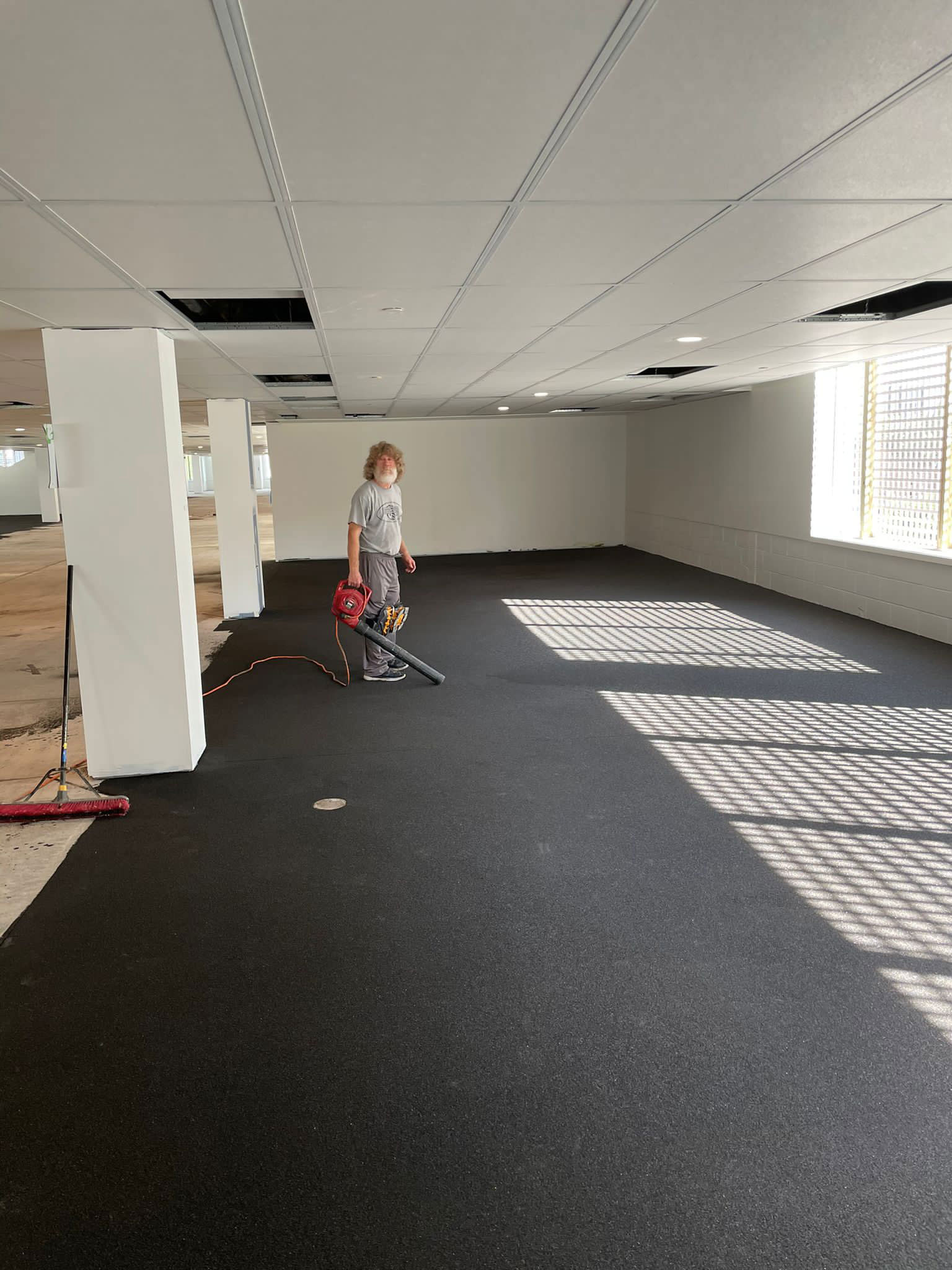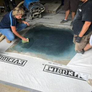Our self-leveling cement-based overlay floor systems can be applied from 1/4” to 5” thick. They can be colored through various means, and many topcoat and sheen options exist.